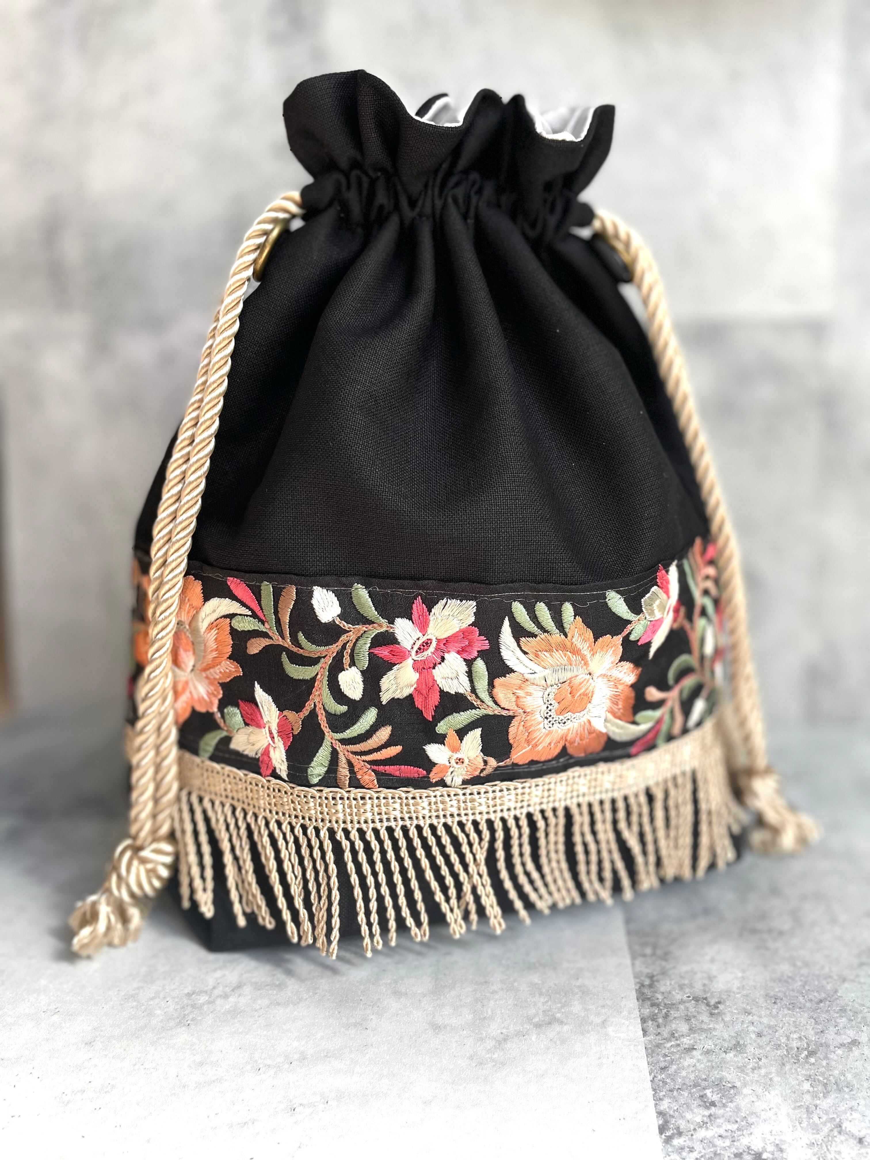 第三弾フリンジMsize:巾着ショルダーバッグ【黒】